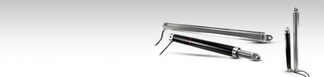 KLEEline in-line actuators in aluminum (IP66) or stainless steel (IP69K) for e.g. raising, lowering, lifting, pressing and pulling functions as well as for positioning tasks. Supplied as standard with a built-in limit switch and with a 3 meter cable.